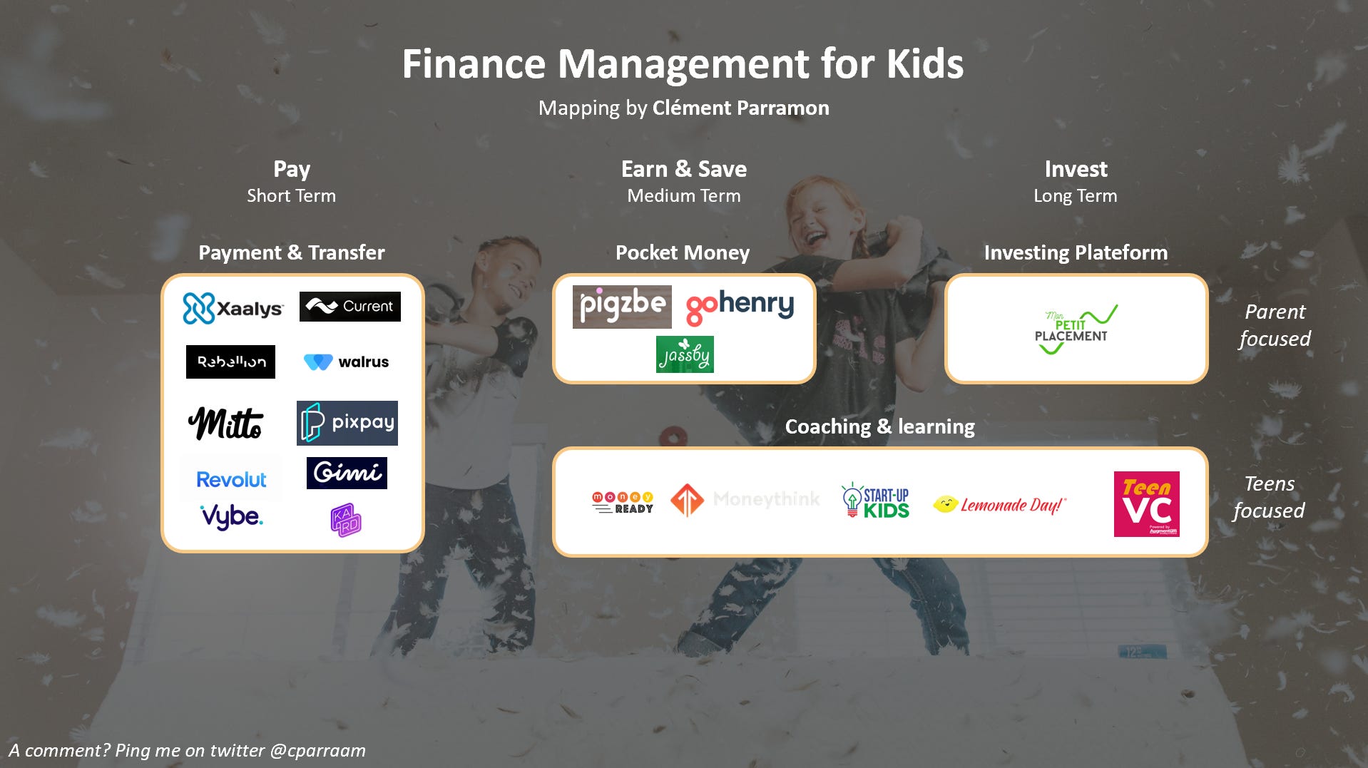 If focused on parents, it’s probably going to be a subscription fee. But when it comes to children, you have to be more creative. Then comes customization, cross-sell, brand partnership (ex: uber and Kard), ..