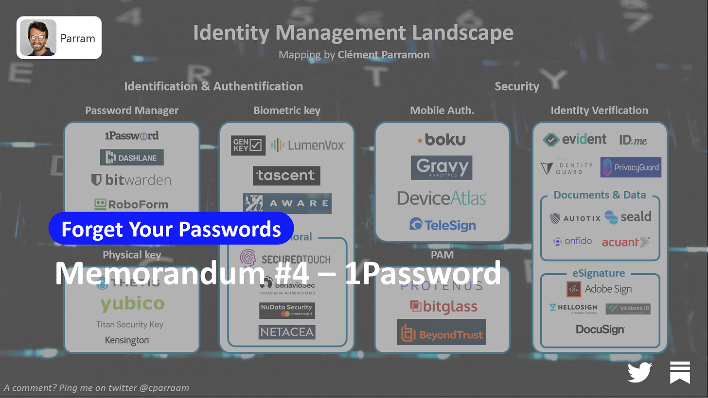 That’s why today I’m sharing you a memorandum about 1Password, a credential management service that has been created 14y ago and that has grown organically since.