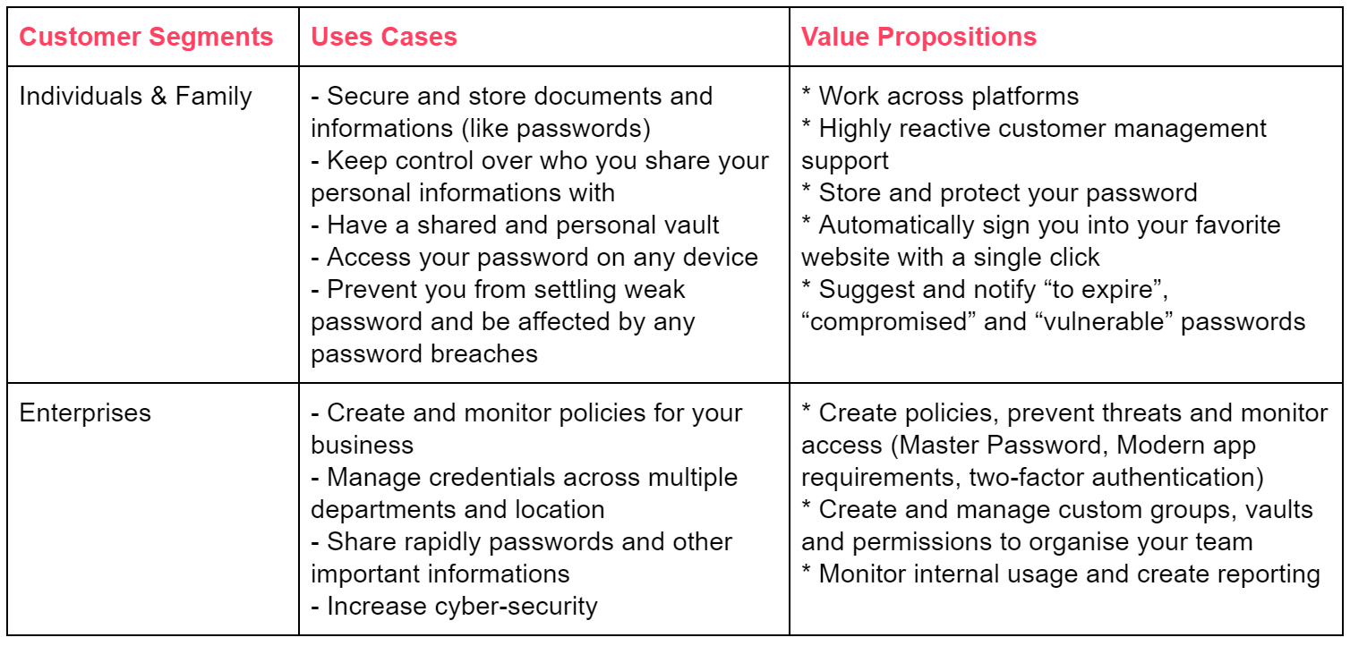 Hereunder, I resumed the uses cases for a password manager and the value proposition offered by 1Password: